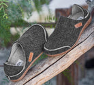 Our slip on wool "convertible" called Convertawool, has a moc toe-like seam on the toe, and a seam on the heel, giving a distinct Europearn look, with a collapsible back, turning this shoe into a clog, effortlessly! Italian sourced wool, offering exceptional quality, that is Cruelty Free / Animal Friendly. The fabulous removable footbed features arch & metatarsal support, covered in wool that is a natural and breathable. The TR, cork blended outsole is extremely lightweight, flexible, and durable. Whether you wear it as a shoe, or collapse the back and wear it as a clog, you will love the versatility of Convertawool!