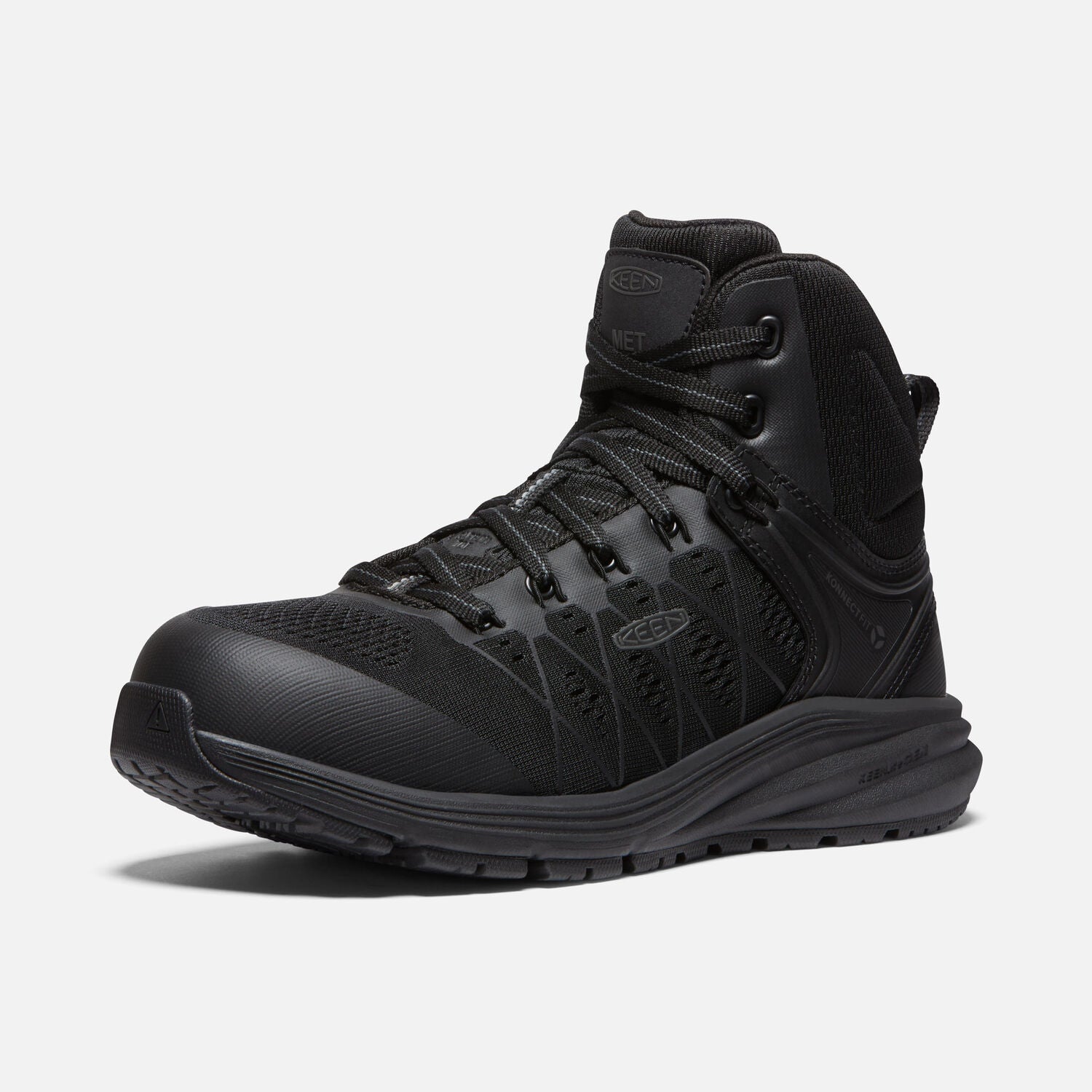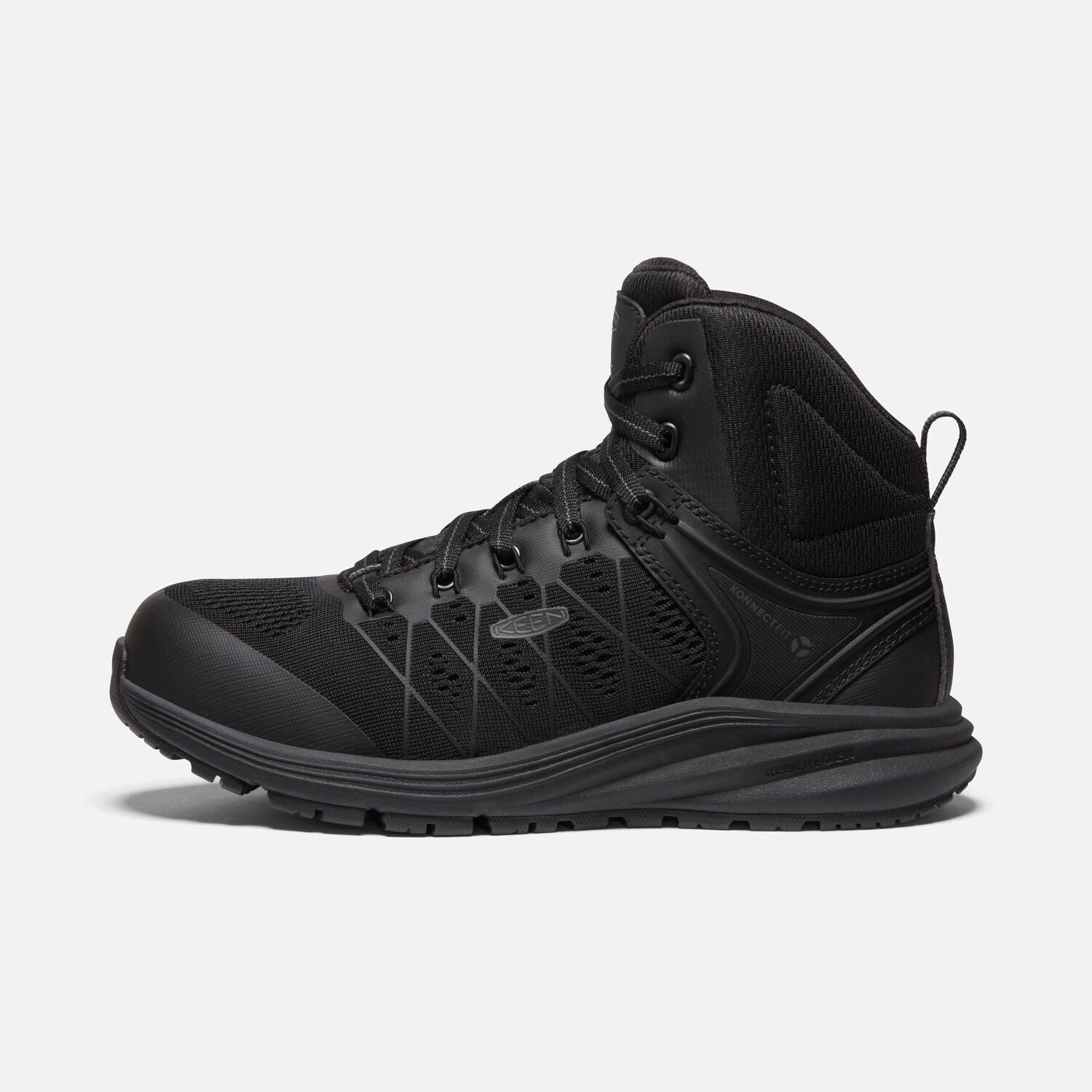 Designed for women's feet and built with KEEN.ReGEN’s proven midsole cushioning, offering 50% energy return with every step, a breathable, engineered mesh upper, carbon-fiber toes, lightweight metatarsal protection, and the KonnectFit heel capture system, this work sneaker is ready for whatever the workday brings.